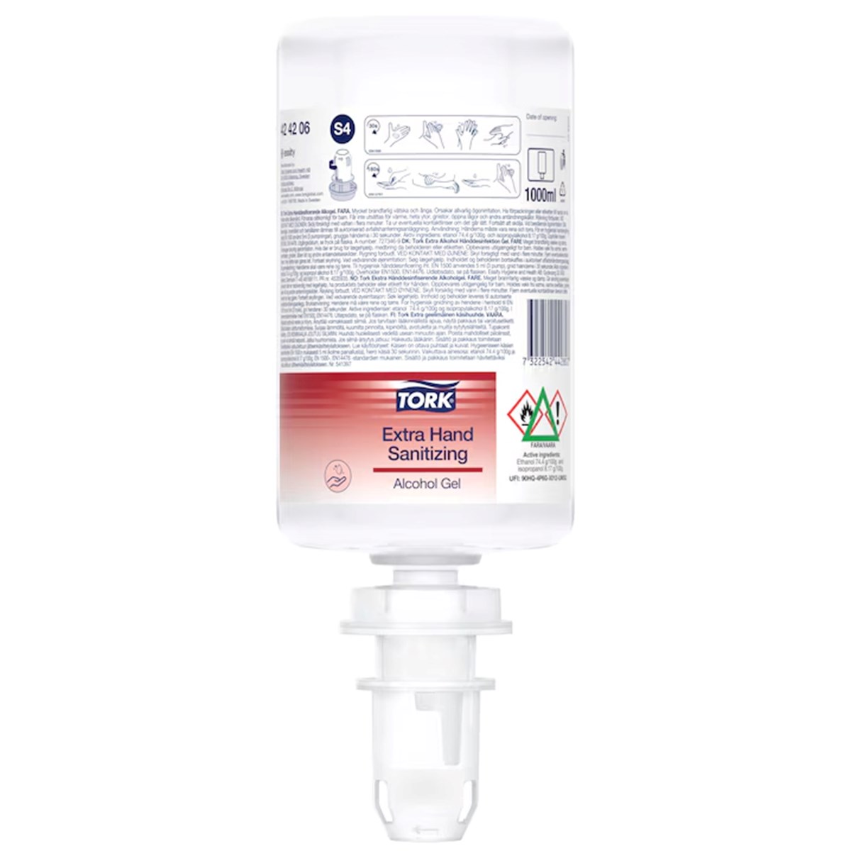 Tork Extra Alkoholgel Handsprit dödar effektivt mikroorganismer och motverkar smittspridning. Gelens verkan mot bakterier, jäst och alla virus gör den till den mest effektiva från Tork. Idealisk för daglig handhygien. Lämplig för användning inom sjukvården. Den lätta, uppfriskande gelen klibbar inte på händerna och innehåller återfuktande ingredienser. Skonsam mot känslig hud enligt ett utförligt användartest under dermatologisk kontroll. Passar med all tvål och handsprit från Tork.