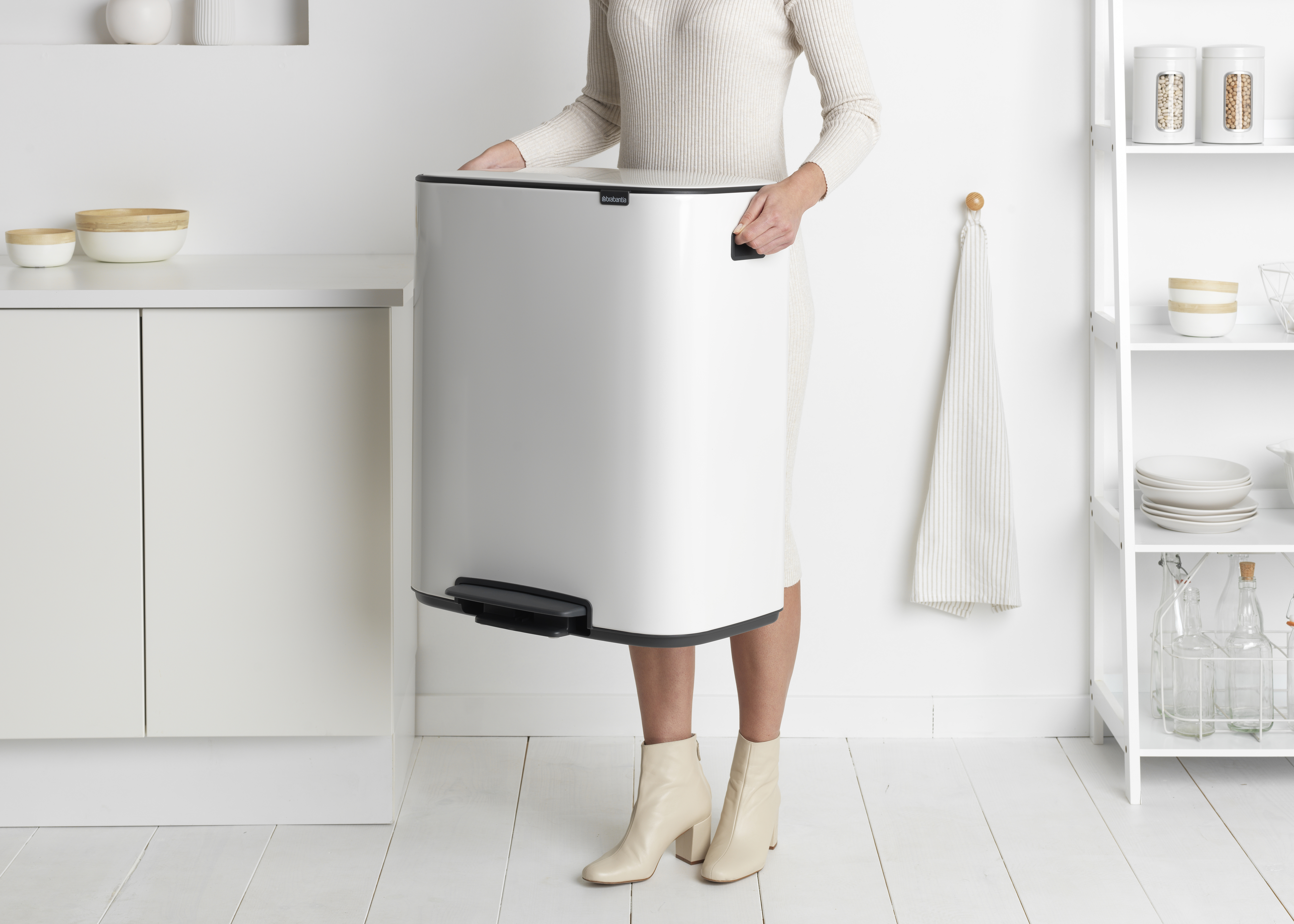 Smidig - ett mjukstängande lock med ett lätt tryck på pedalen Lätt att rengöra - en urtagbar plastinnerhink Lätt att flytta - två robusta integrerade handtag