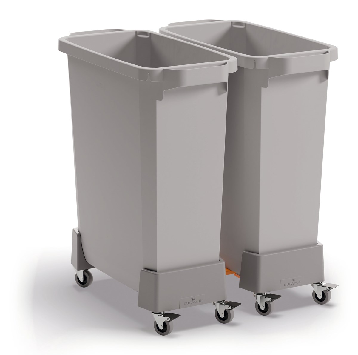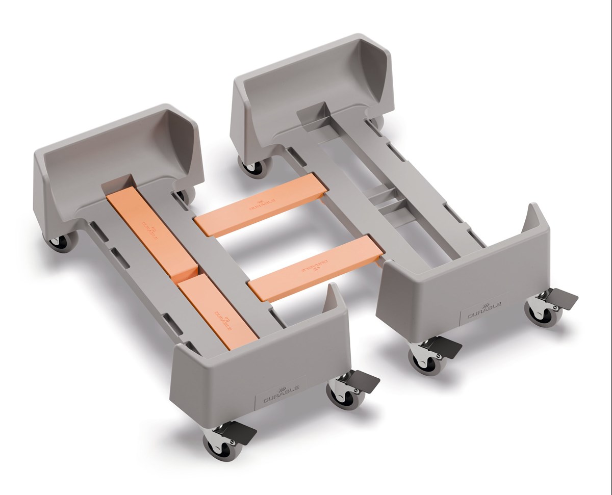 DURABIN 60 rPP gör det lätt att flytta en fylld DURABIN 60 liters soptunna på ett smidigt sätt. Det kan t.ex. vara råmaterial, material som ska återvinnas eller matavfall som ska samlas ihop på annan plats. För inomhus- och skyddad utomhusanvändning på plana ytor i lagerlokaler, produktionsområden, matsalar etc. Upp till 4 rullplattor - för både 60 och 90 liters tunnor, kan kopplas ihop med hjälp av de medföljande och integrerade kopplingarna.