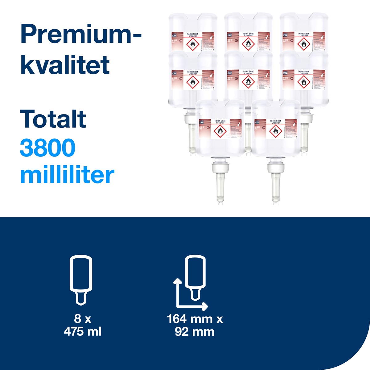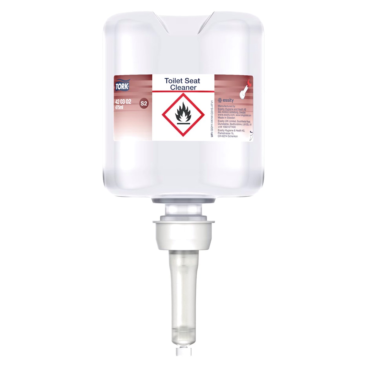 Tork Toalettsitsrengöring ger besökarna extra trygghet och komfort. Få en renare sits med en dos toalettsitsrengöring på en bit toalettpapper. Stängd påfyllningsflaska med engångspump för att minimera risken för korskontaminering.