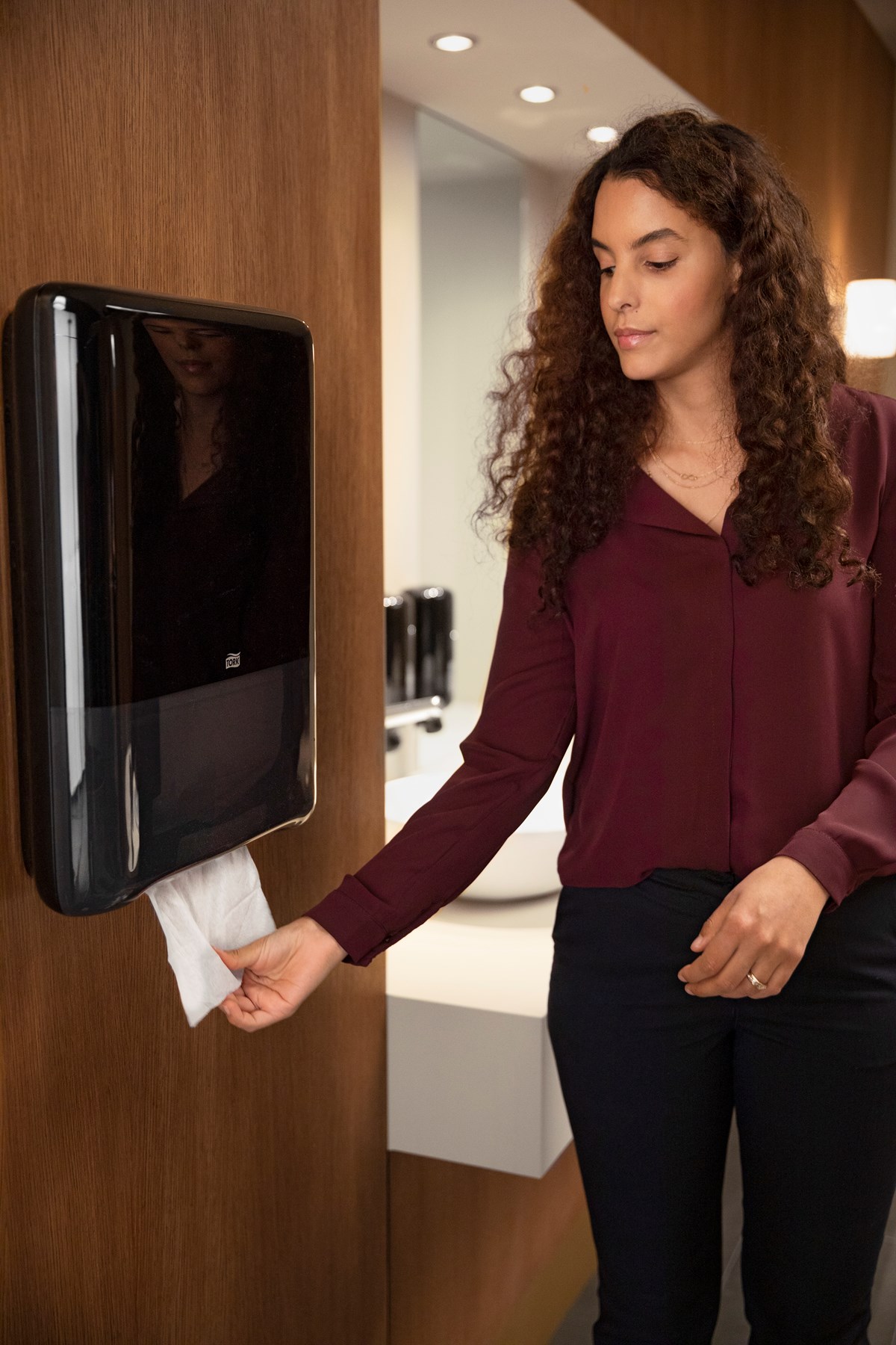 Hög kapacitet på 1 230 handdukar För välbesökta toalettutrymmen Smidig utmatning på bara tre sekunder Extra slimmad och utrymmessnål design Refillhanddukarna är komprimerade med 50 % vilket underlättar förvaring