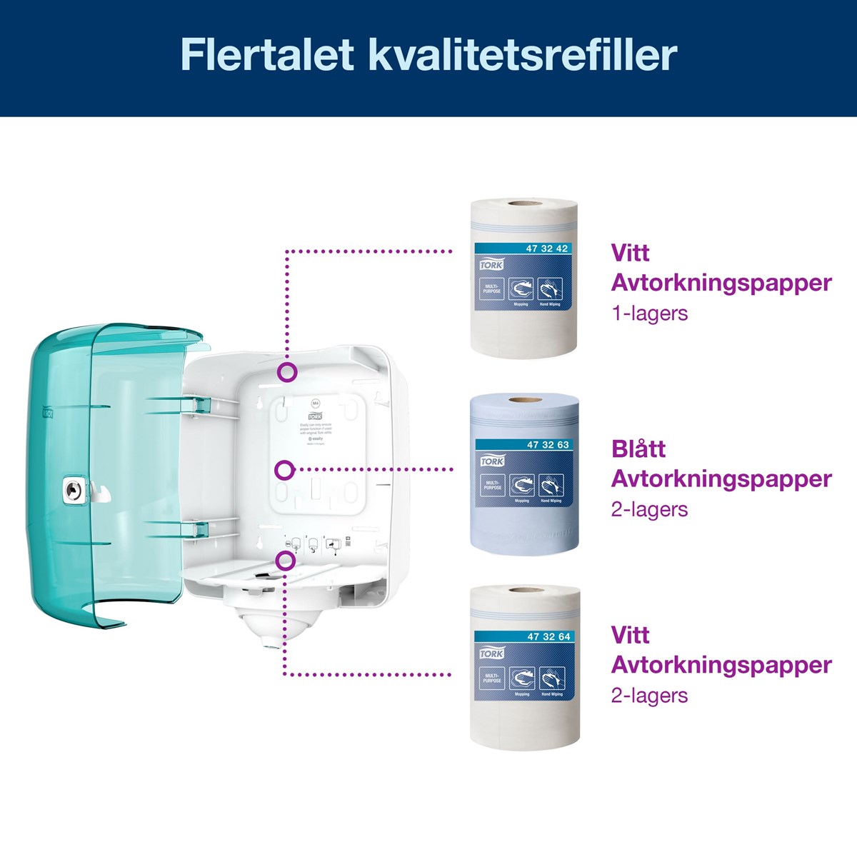 Robust, centrummatad hållare med roterande munstycke som ger ett ark i taget. Mått: (H x B x D) 33,1 x 25,5 x 23,9 cm.