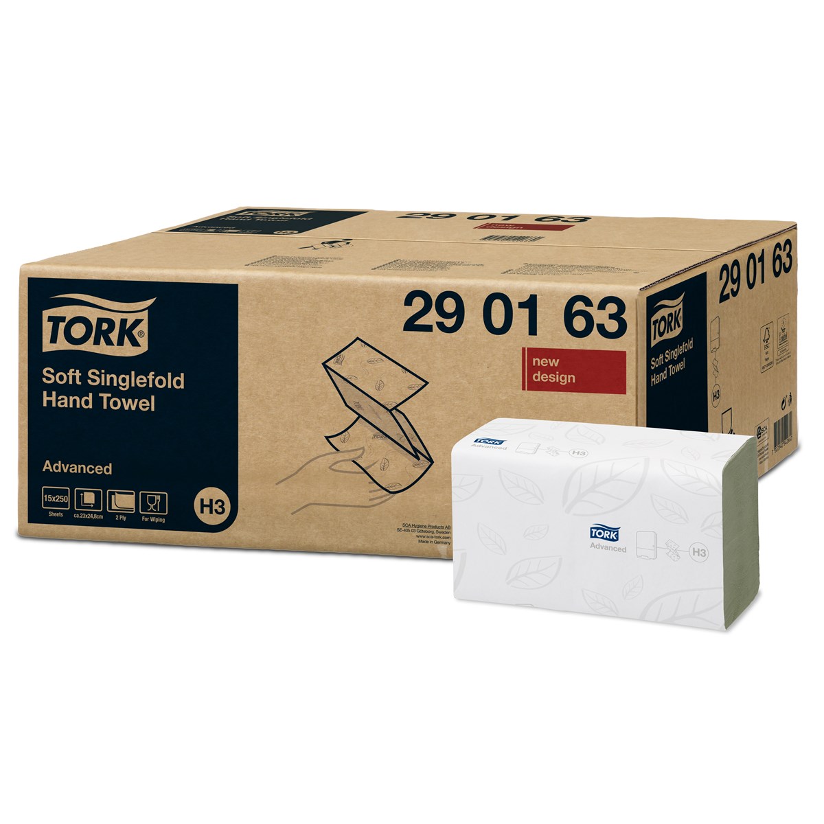 Pappershanddukar av hög kvalitet (Advanced). Vit, 2-lag. Mått: 24,8 x 23 cm. 250 st/bunt, 3750 st/förp. Passar till Tork hållare H3.