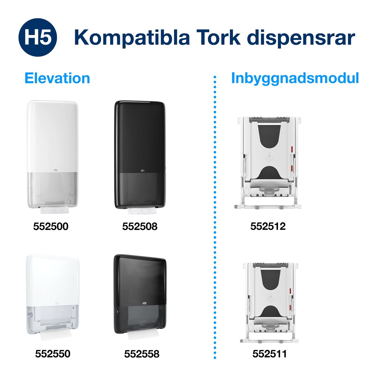 1-lags vita handdukar av baskvalitet (Universal). Buntarna är komprimerade med 50% så att det får plats dubbelt så många på mindre yta. Buntarna greppar in i varandra när de fylls på så att de fortsätter matas ut en i taget utan avbrott. Detta ger hög kapacitet och färre påfyllningar samt bättre genomflöde i toalettutrymmena. Det finns alltid en tillgänglig handduk som är lätt att ta tag i och dra ut. Mått: 22,5 x 20,1 cm. 410 st/bunt, 4920 st/förp. Passar till Tork hållare H5.