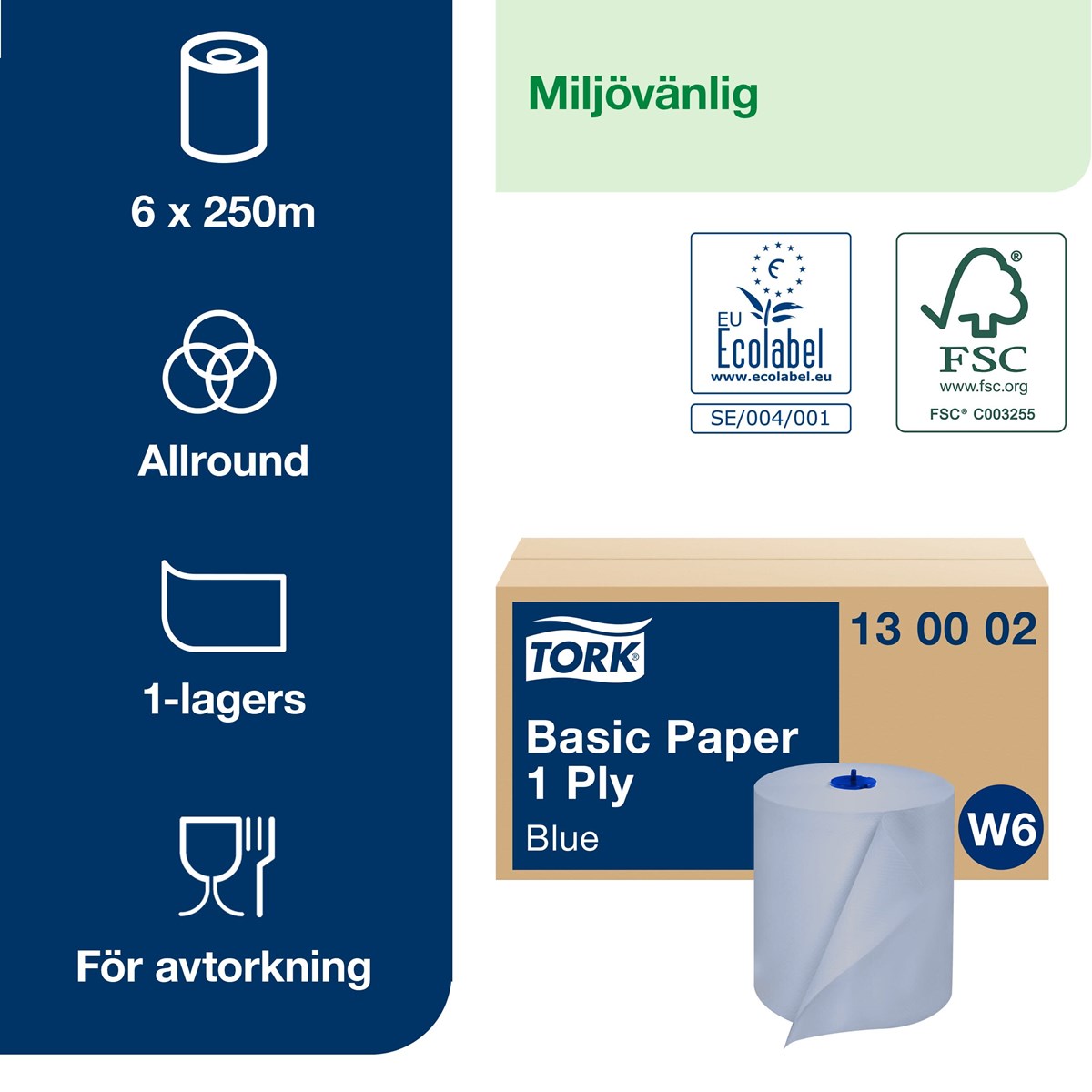 Välj detta blå avtorkningspapper på rulle för förbättrad hygien i utrymmen som används för matberedning och hantering av livsmedel. Det har både en hög synlighet och det är HACCP-certifierat för säkerhet. Varje ark rengör effektivt med sin styrka, tjocklek och absorptionsförmåga, vilket gör att det går åt mindre papper. Denna rulle med avtorkningspapper sparar även tid vid påfyllningar då det har en hög kapacitet och varar längre.6 rullar, 1-lagers. Universal-kvalitet. Mått: 250 m x 19,5 cm. Hylsa inre diameter: 3,8 cm. Passar med W6-dispensrar.