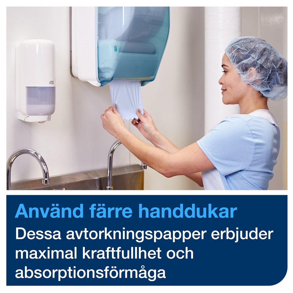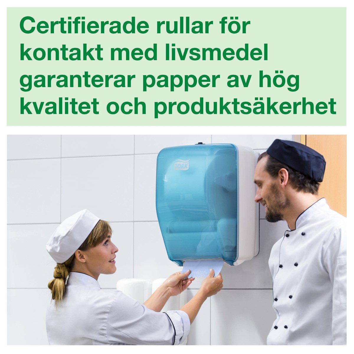 Rullar i enlighet med HACCP som är certifierade för livsmedelskontakt och anpassade för användning i utrymmen där livsmedel hanteras Klarar av mycket fukt och våta miljöer Maximal styrka, tjocklek och absorptionsförmåga Blå färg som har hög synlighet och är enkel att spåra Högkapacitetsrulle för färre påfyllningar