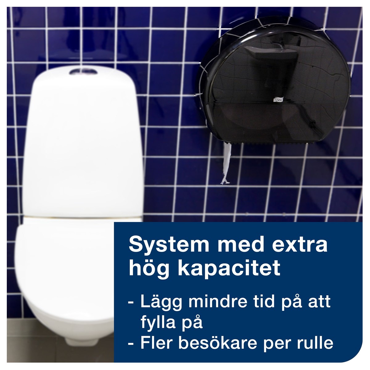 För välbesökta toalettutrymmen Sluten dispenser som skyddar rullarna och förbättrar hygienen Hög kapacitet för färre påfyllningar Optimal rullbroms minskar förbrukningen Smart rullhållare för restpapper som ger mindre avfall